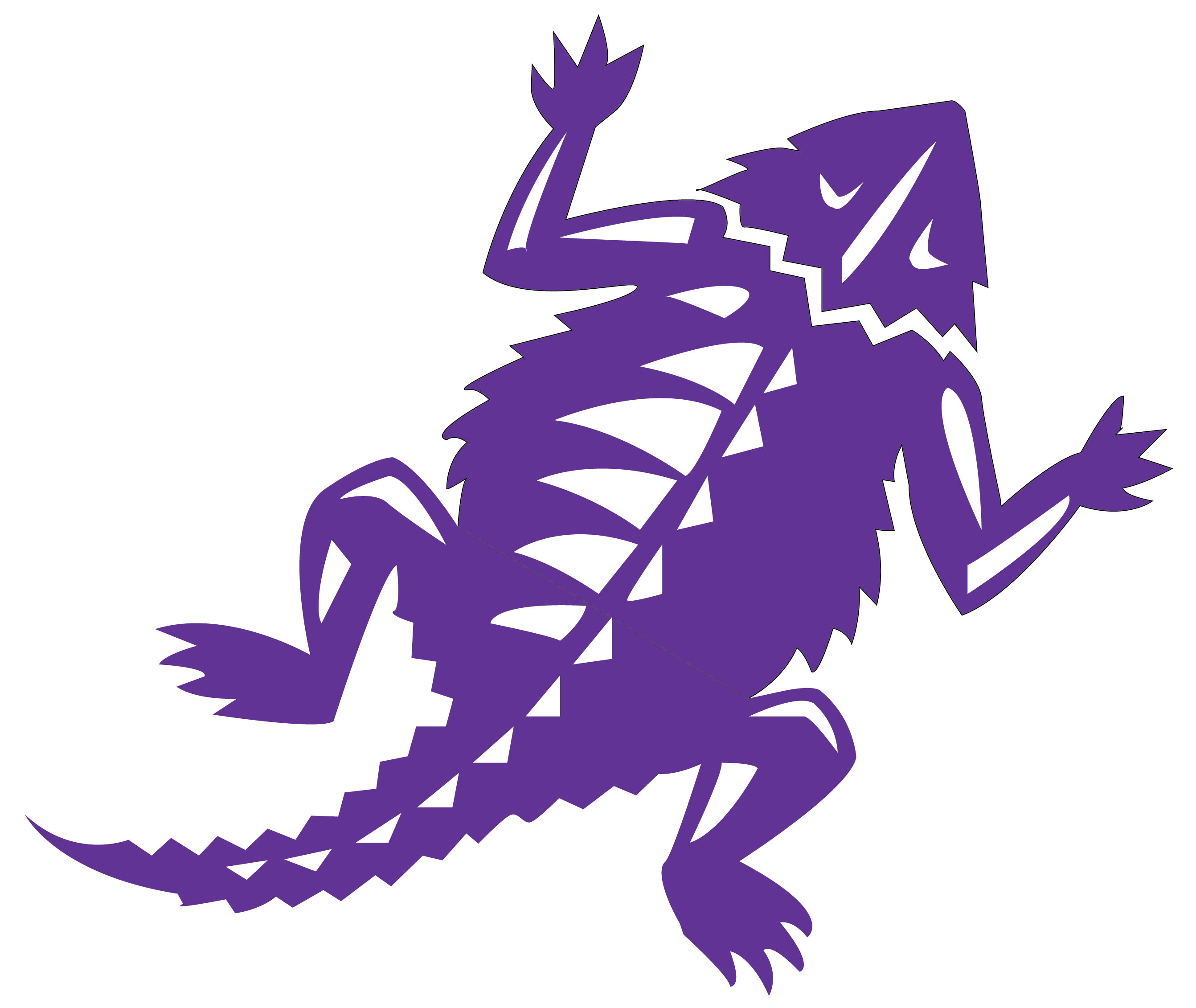 Use the pen tool to outline each part of the Horned Frog, ignoring the small white parts in the beginning. Once the purple outline is complete, move the the smaller white details.