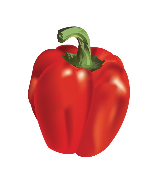 I started with the white glares on the pepper. If the gradient section is too large and the color extends further than you would like, you can keep adding more lines in the mesh grid which cuts off the color of gradient.