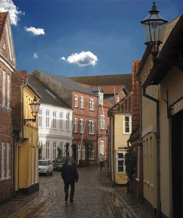 To replace the grey sky in the first city photo with the new blue sky, we had to create a clipping mask.